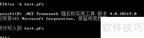 test.pfx可替换为任意文件名,密钥文件扩展名亦可使用.snk或其他格式。