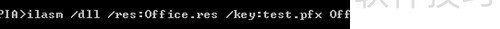 输入命令 ilasm /dll /res:Office.res /key:test.pfx Office.il /out:Office.dll 后按回车,使用汇编工具 ilasm(注意不是 ildasm)将 IL 源码重新编译生成带有资源和强名称签名的 Office.dll 文件。