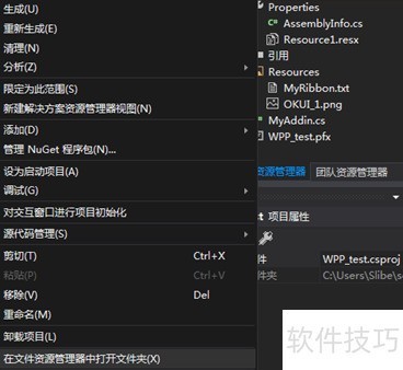 右键点击项目,选择在文件资源管理器中打开文件夹。