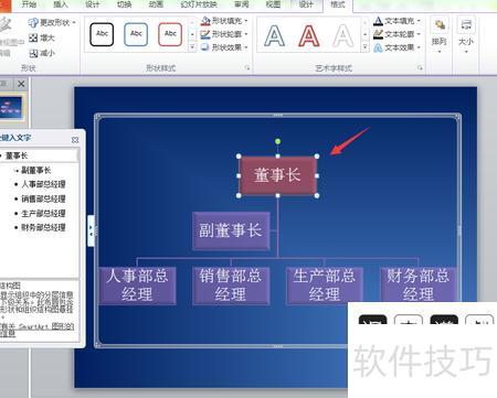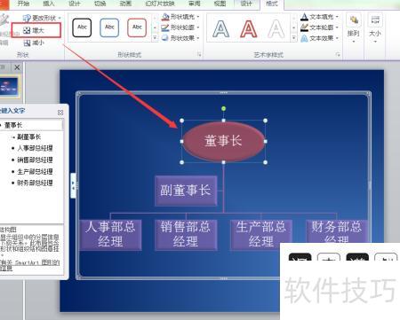 若要放大SmartArt图形,可点击菜单栏中的增大按钮,每次点击图形尺寸都会相应变大。
