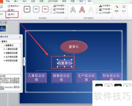 若要缩小SmartArt图形,可点击菜单栏中的减小按钮,每次点击图形尺寸便会相应缩小。