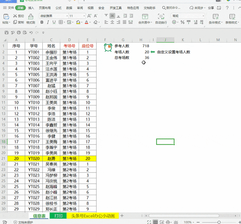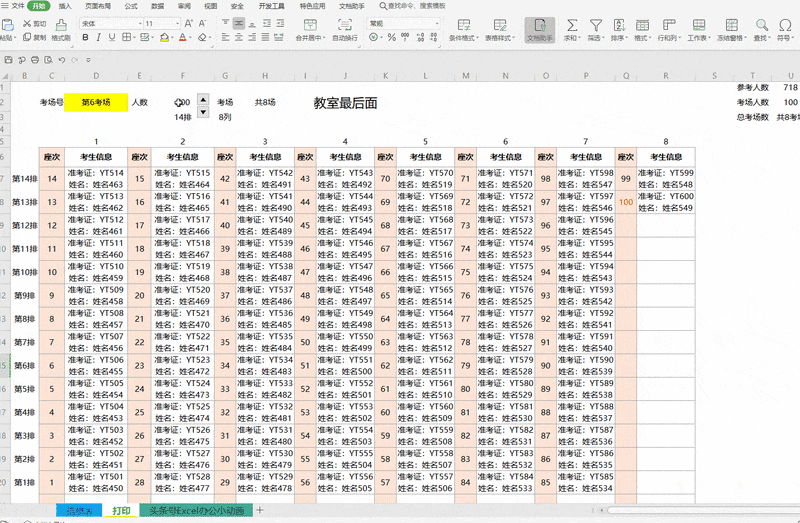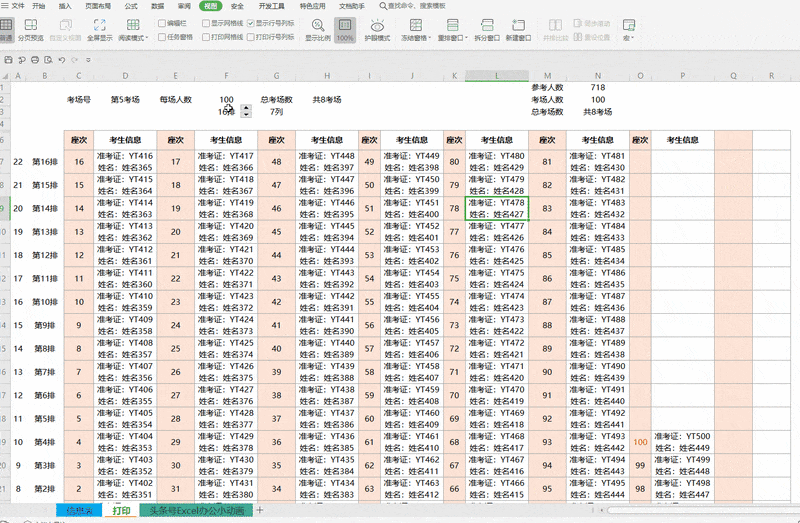可灵活调整考场数量、自定义排数及每场人数,总列数将自动计算。参数修改后,系统即时更新显示。支持设置动态打印区域,当调整每个教室容纳人数后,点击打印预览即可查看并自定义打印范围。通过一个简单函数,即可完成Excel人事招聘看板的全部操作,操作便捷高效。