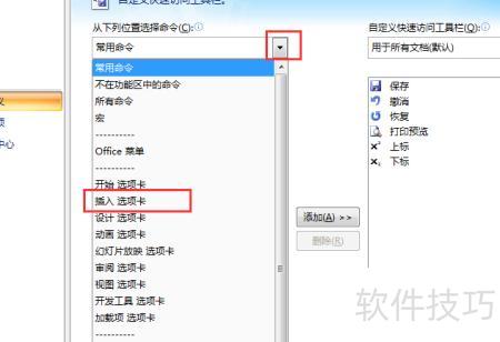 点击下拉箭头,选择插入选项卡。