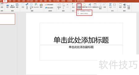 点击添加首张幻灯片,选择插入菜单中的文本框,单击文本框下方的v按钮,即可看到绘制横排文本框和竖排文本框选项。