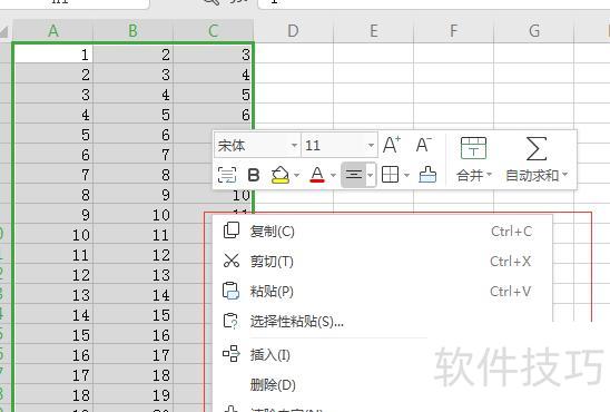 全选数据后,右键点击所选区域,弹出设置菜单。