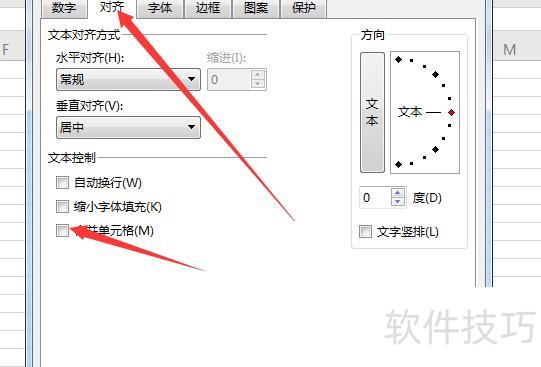 打开单元格设置界面,点击对齐选项,选择其中的合并单元格,即可将这三列单元格合并。