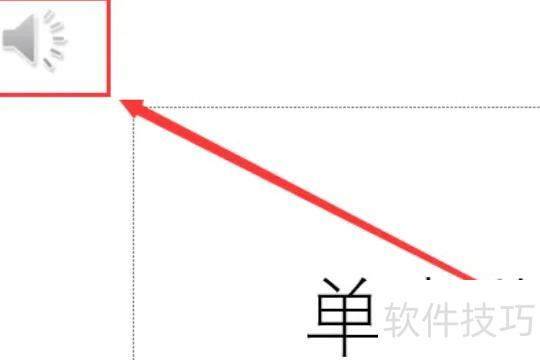 随后PPT页面会出现一个喇叭图标,点击后弹出音频工具栏,再点击播放选项并查看其下拉菜单,所示。