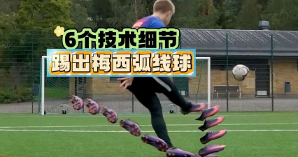 外脚背弧线球技巧要求脚面绷直、脚趾内扣,击球点偏于球的侧下方,利用小腿爆发力摆腿发力,射门时球呈高弧线,适合弱侧出其不意。