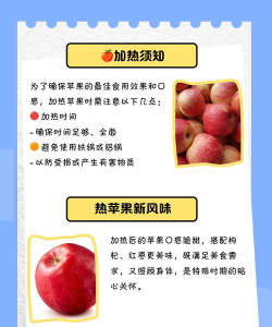 苹果加热可制作拔丝苹果、糖醋苹果等食谱,适合孕妇或早餐搭配,提升口感和风味。