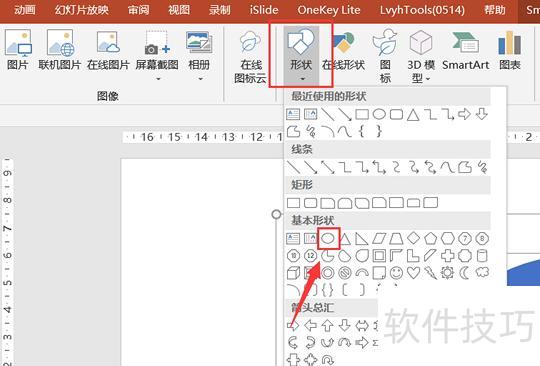 在幻灯片中插入空心圆形作为基础图形,可通过插入选项卡中的形状功能选择圆形来完成。