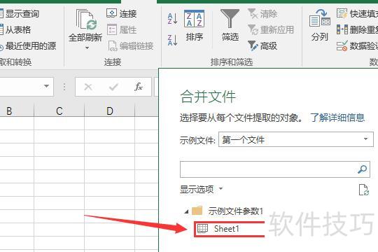 点击后合并文件,合并完成再点击sheet1,即可进入查询编辑器界面。