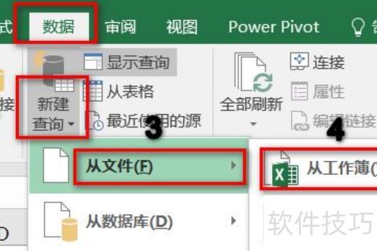 打开任意Excel表格,选择数据选项卡,点击新建查询,在弹出的菜单中依次选择从文件和从工作簿。