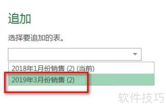 页面弹出追加对话框后,点击下拉框选择其他Excel表格,需合并几张就选几张。