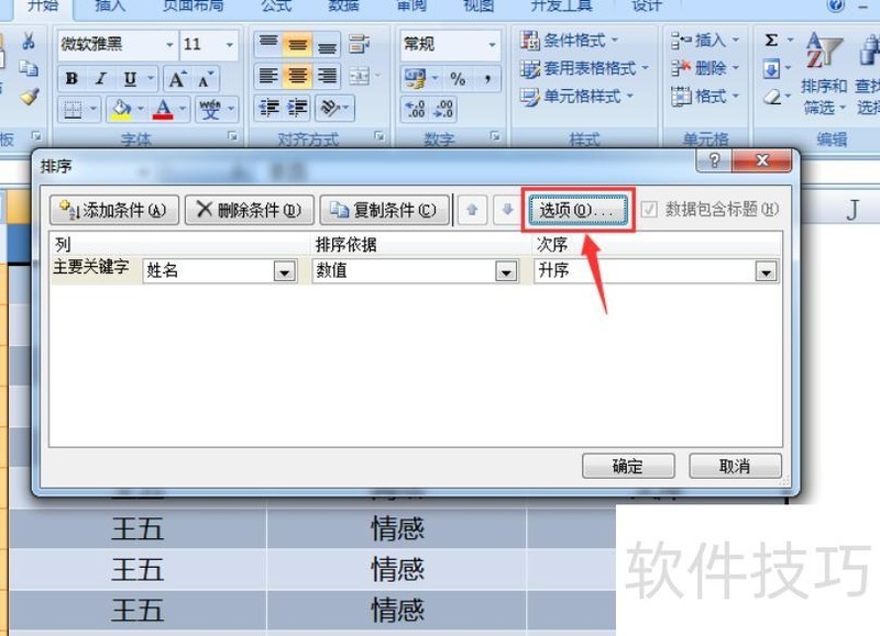 接下来揭示排序的深层原因,按前述方法再次打开排序窗口,点击顶部的选项,即可查看Excel排序的具体规则。