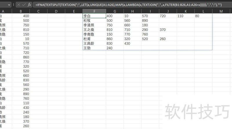 姓名列:通过INDEX函数结合SMALL与IF,筛选出A1至A26区域内首次出现的姓名行号,并按升序逐个提取,实现不重复姓名的自动排序输出。
