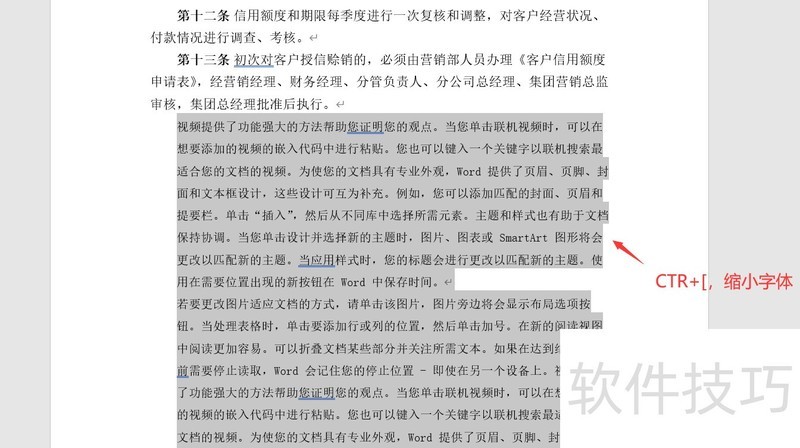 多次按Ctrl+[可逐步缩小字体。