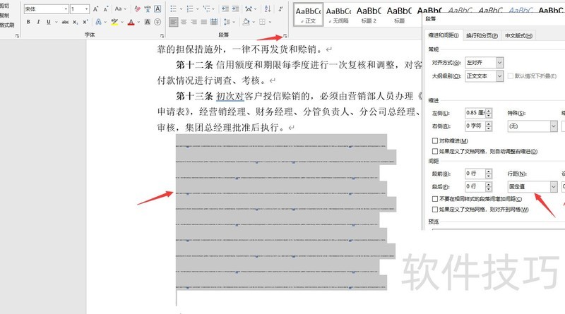点击开始,进入段落设置,将间距设为固定值0.7磅。