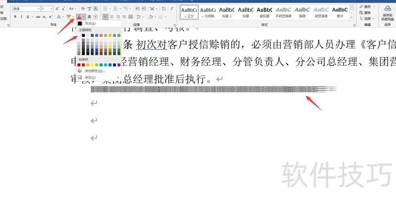 将新增的随机文字紧密排列,选中后点击字体颜色设为白色。