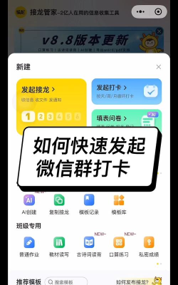 微信群打卡功能支持签到、任务记录及接龙操作,帮助用户在群内进行日常活动或工作安排的管理。