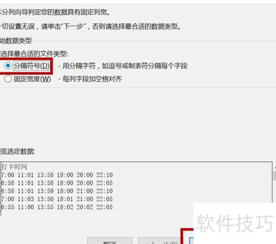 在弹出窗口中选择分隔符号(D)类型,然后点击下一步。