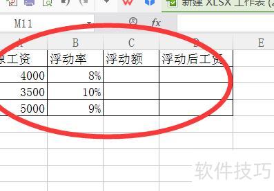 计算浮动额需先确定浮动率,按图示格式列出待计算的数据。