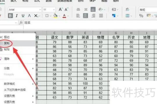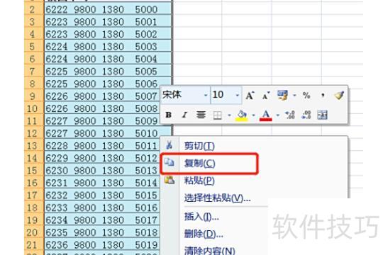 选中需复制的区域,右键点击并选择复制功能,操作所示。