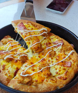 鸡肉披萨注重健康与营养,使用鸡胸肉、蔬菜等食材,搭配芝士和番茄酱,提供蛋白质和膳食纤维。