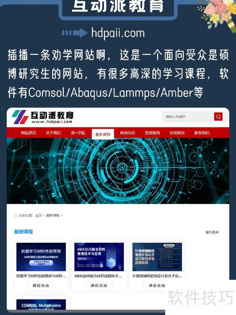 hd pai icom插播推荐一个专为硕博研究生打造的劝学网站,提供Comsol、Abaqus、Lammps、Amber等高端软件的深度学习课程,内容专业丰富,助力科研进阶。