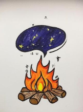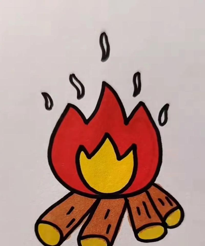篝火是野外架柴燃烧的火堆,绘画时需注意火焰的飘忽轮廓和蜿蜒形状。先画粗略轮廓,再用曲线表现火焰流动,注意颜色由中心亮浅向边缘深暗过渡,可参考照片或手绘结合,增强真实感。
