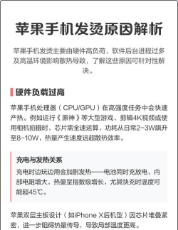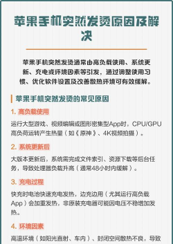 苹果手机发烫可能由后台程序过多、软件问题或电池老化引起,导致CPU超载或散热不足,需检查使用习惯和系统状态。