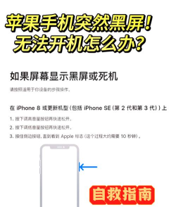 苹果手机黑屏时可尝试强制重启,具体步骤包括按音量键和侧边按钮组合操作。