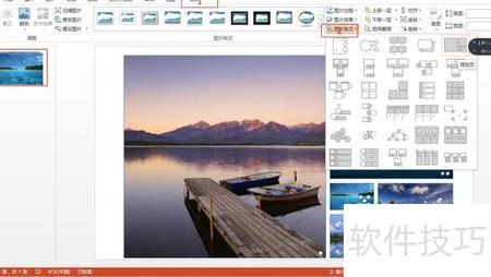 选中图片后,进入图片工具-格式-图片版式,可浏览多种版式选项,实时预览效果,最后选定合适的一种即可。