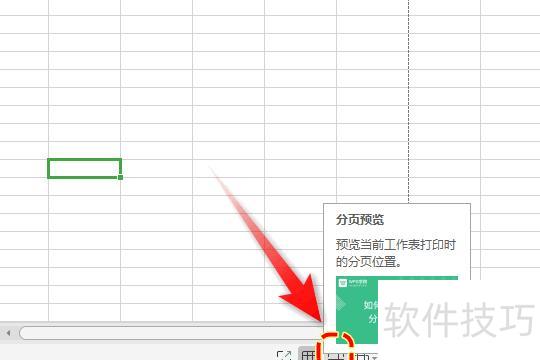 进入文档后,点击底部的分页预览按钮,所示。