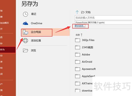 点击右上角文件,选择另存为,点击这台电脑,再点更多选项,弹出窗口。