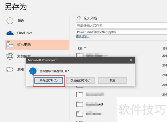 在弹出的对话框中选择所有幻灯片。