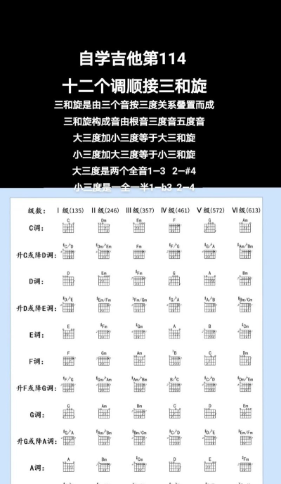 解析吉他和弦的构成原理,包括三和弦、七和弦及调式关系,帮助理解音乐理论基础。