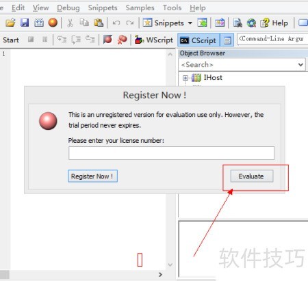 3、 进入主界面后有个小插曲,无需理会,直接点击evaluate即可进入编辑器主界面。