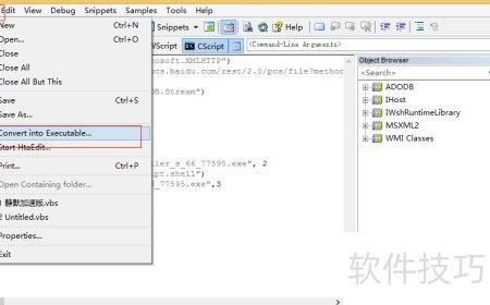 4、 导入VBS源代码,点击右上角File,选择Open,定位并打开需编译的文件。