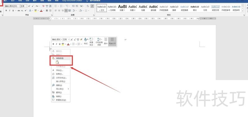 新建Word文档,右键点击并选择粘贴选项。