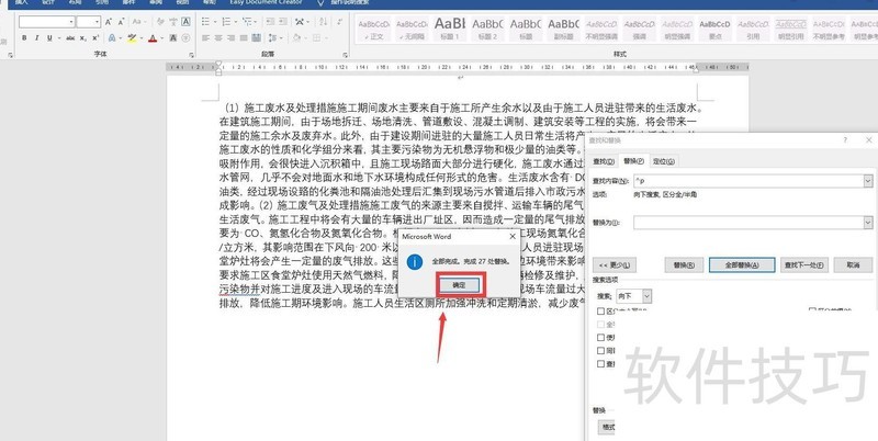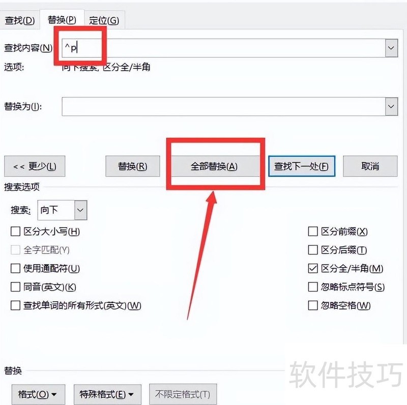 此时查找内容框中显示^p,点击全部替换即可完成操作。