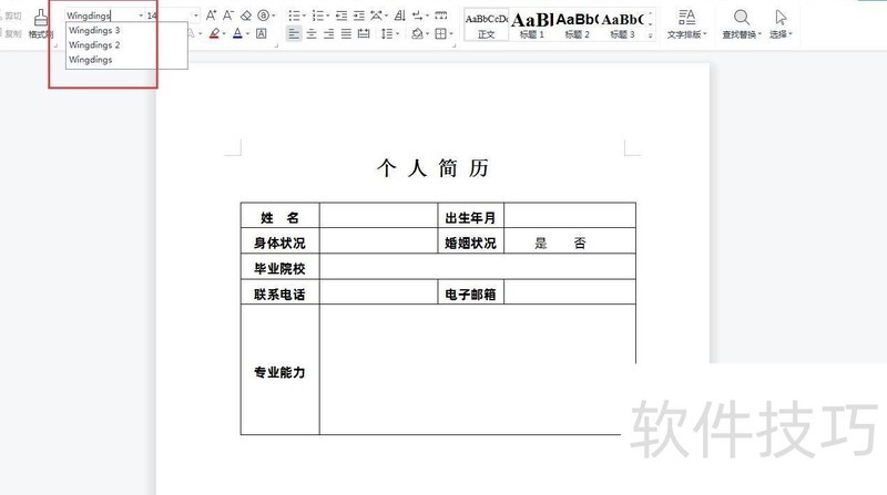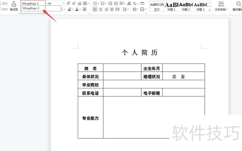 在Word文档中选择Wingdings 2字体,该字体通常为电脑系统自带,无需额外安装即可使用。