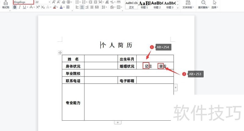 方法三:将Word字体设为Wingdings,按住ALT键并用数字小键盘输入254,松开后即可插入打勾符号;同样按住ALT键,输入253后松开,可快速插入带框的?符号。操作简便,适用于快速添加标记。