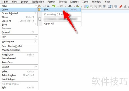 2、 点击打开菜单,然后选择文件选项。