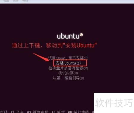 6、 操作完成后,屏幕将显示相应界面,使用方向键上下移动,选中安装Ubuntu后按回车确认。