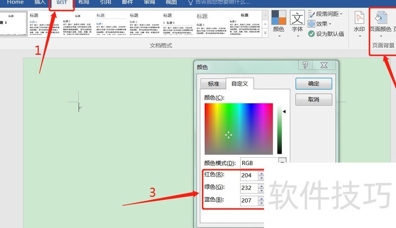 将红色值改为204,绿色值改为232,蓝色值改为207,最后点击确定按钮。
