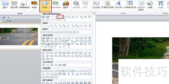 点击插入,选择形状中的矩形,绘制一个覆盖目标区域的矩形以添加马赛克效果。