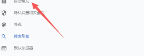 在设置页面左侧导航栏中,点击 「自动填充」