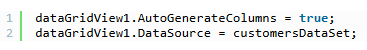 这样就会自动产生对应数据的行数据了。如果不自动产生列,则需手动添加列,把列的数据源属性名(DataPropertyName)设置为对应数据类的属性名。