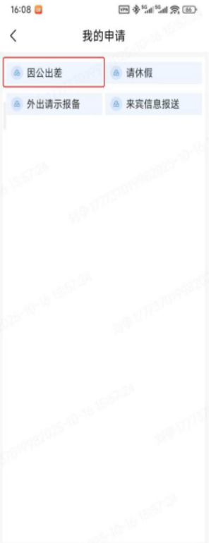 2、选择“因公出差”。