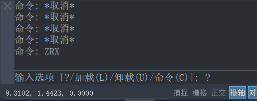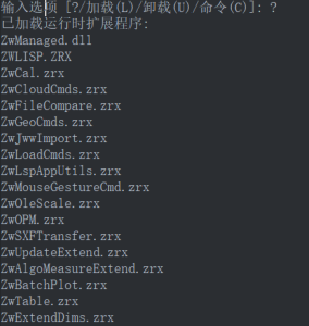 2.命令行提示:输入选项 [?/加载(L)/卸载(U)/命令(C)]: